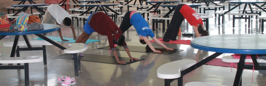Ms. Jess with Yoga Across America teaches yoga to students and staff members for free every Tuesday after school in the cafeteria from 4:00-5:00 PM and every other Friday in gym.