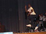 Hall monitor and Patterson alumnus Kevin Spriggs rocks a retro outfit during Spirit Week. (Photo: Shane Braden, Patterson Press)