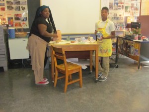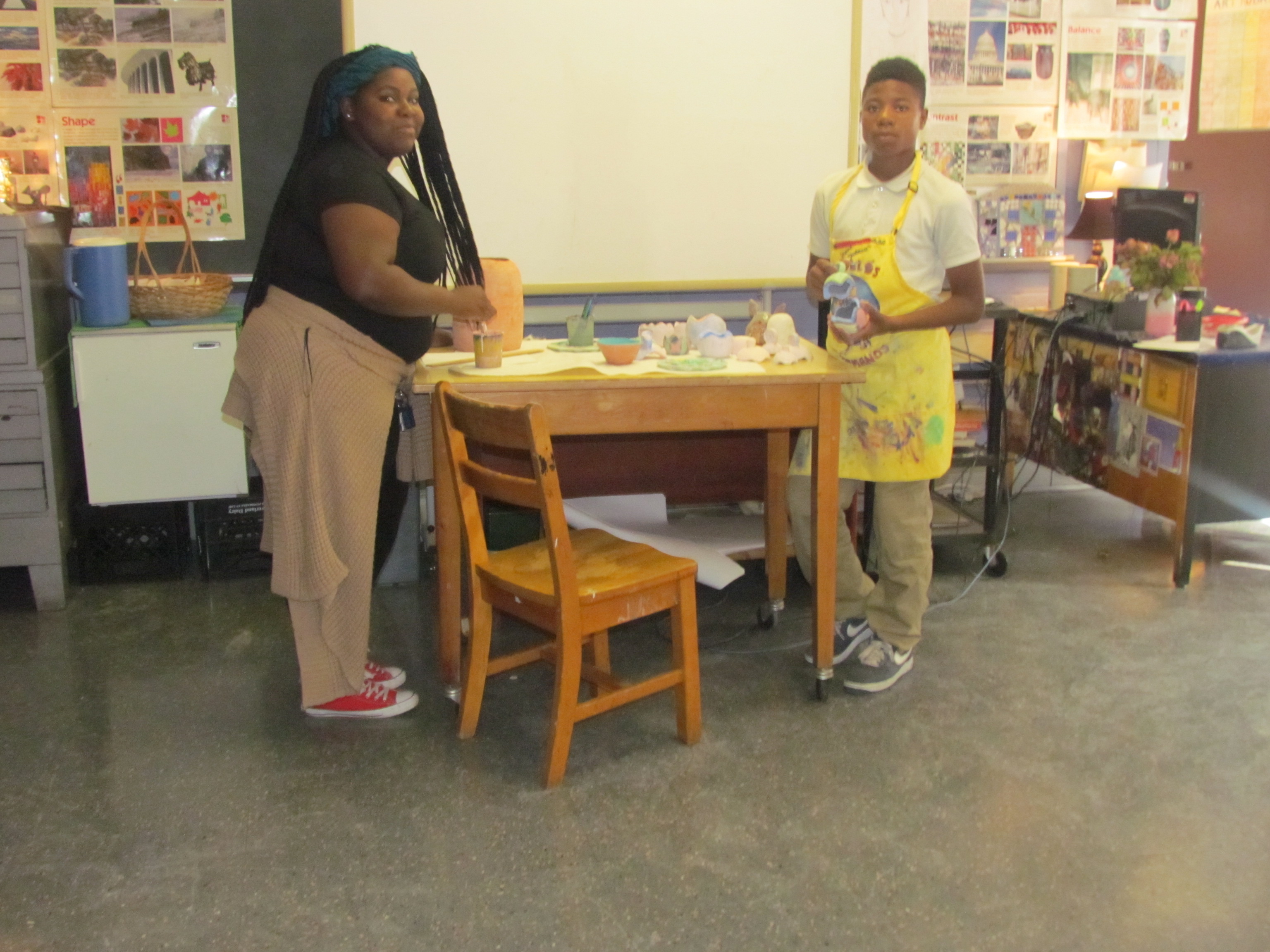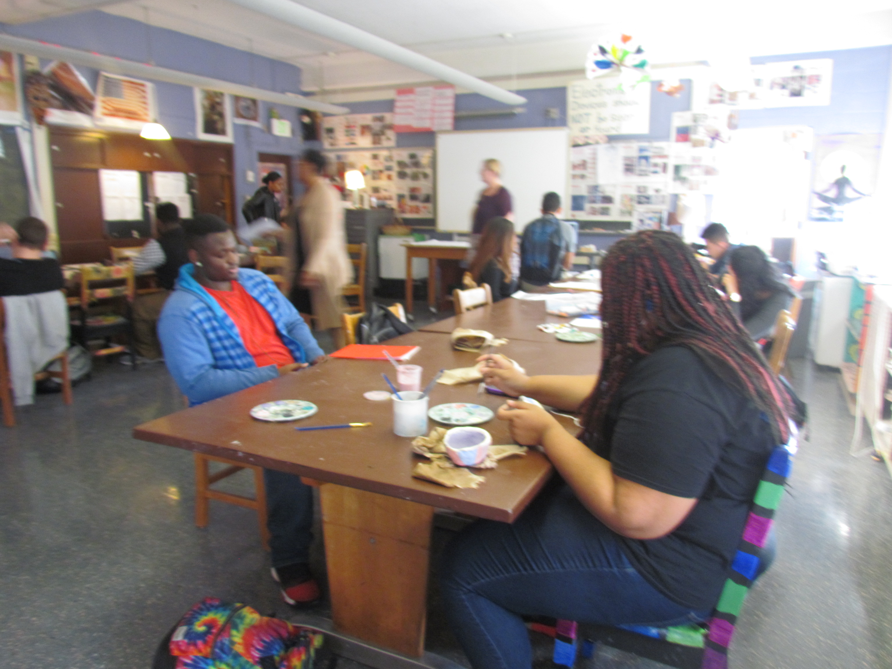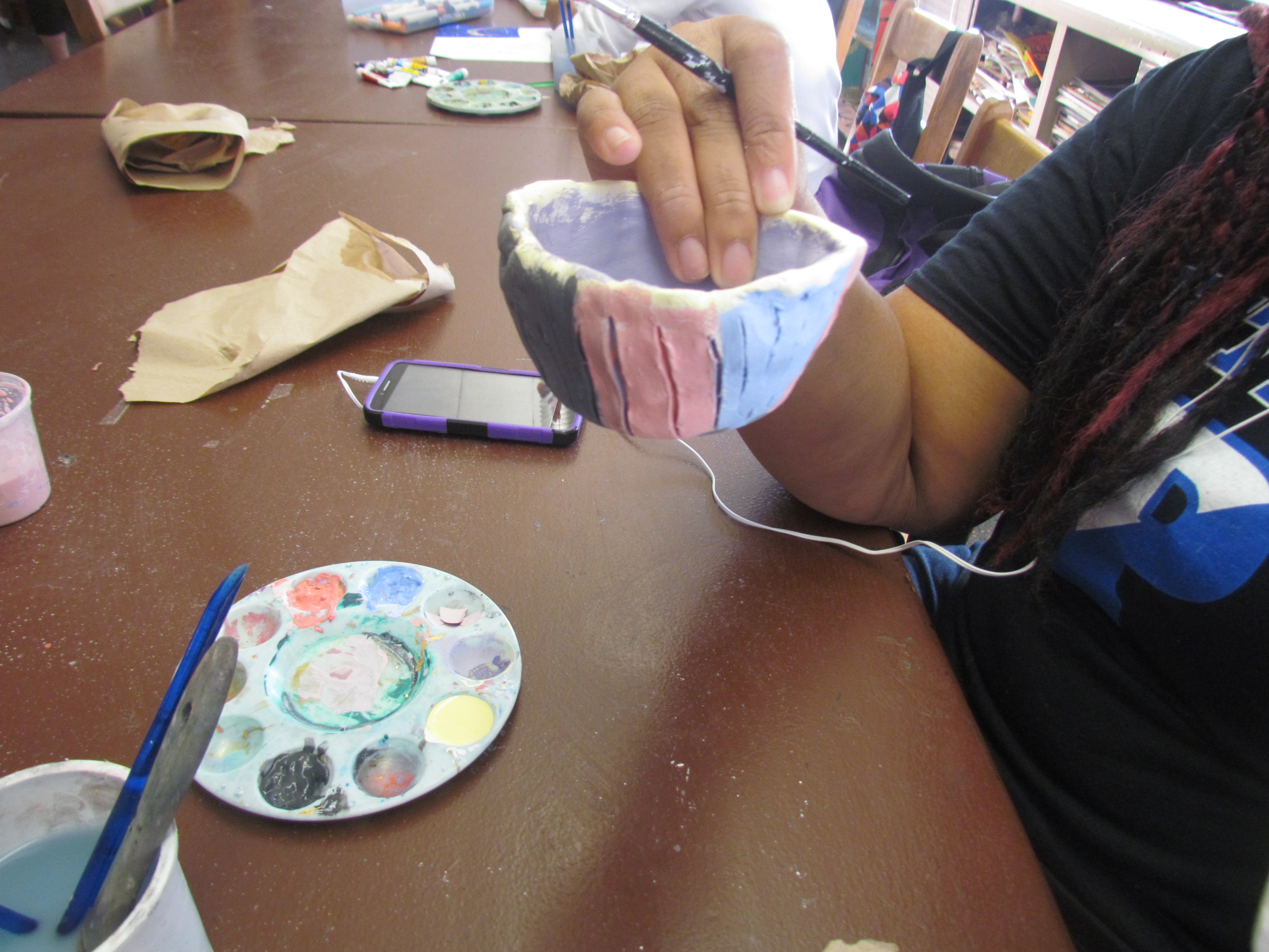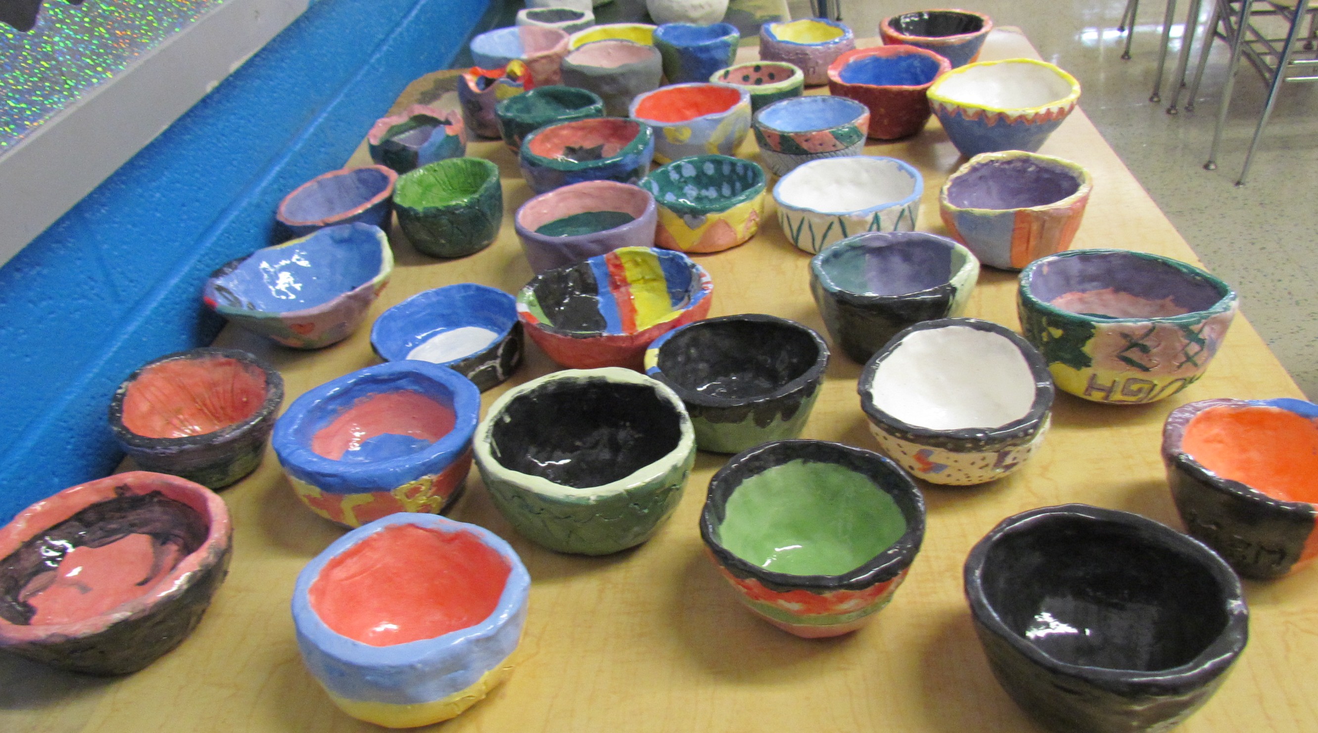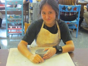 After the students learned about the bowls, they actually made the bowls out of clay. So the next day the students went into the art classroom. Ms. Holter, who is one of the art teachers at Patterson, helped them all make the bowls out of clay and decorate them in the process. So Ms. Holter made the clay hard by putting them in a kiln. A kiln is a special type of oven made for making ceramics. After the students painted the bowls she put them back into the kiln to give the paint a glossy appearance.
