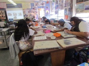Mr. Latanishen’s World History students also worked on an arts integration project with Ms. Holter around the same time. Their project involved making cuneiform tablets out of clay using symbols that the students created.