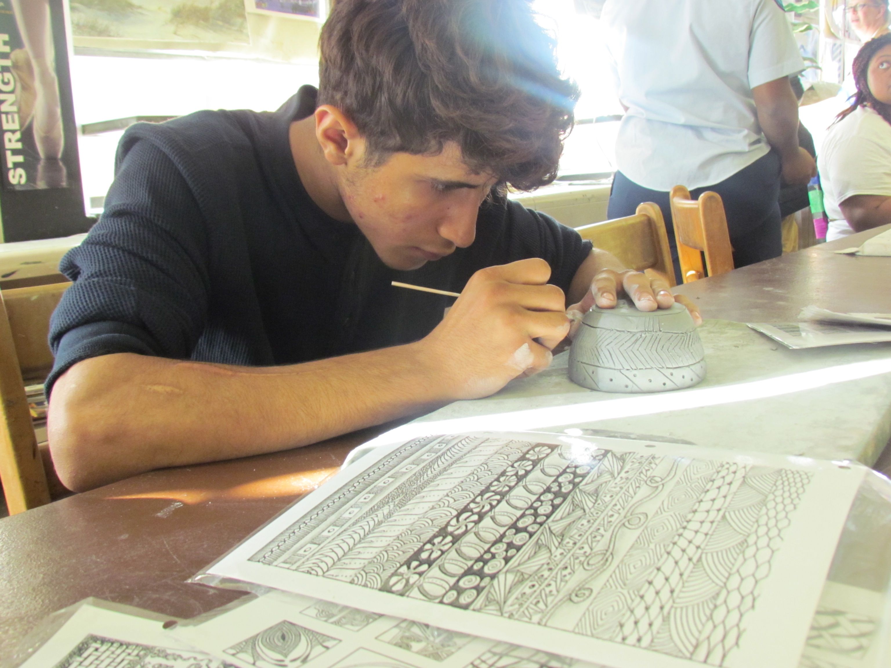 Mr. Pesa’s World History students made Japanese Tea bowls out of clay and decorated them in October with Ms. Holter as part of an arts integration project. The students were learning about the history of Japanese culture and how the tea bowls were very essential in history. The old tea bowls were actually made from clay.